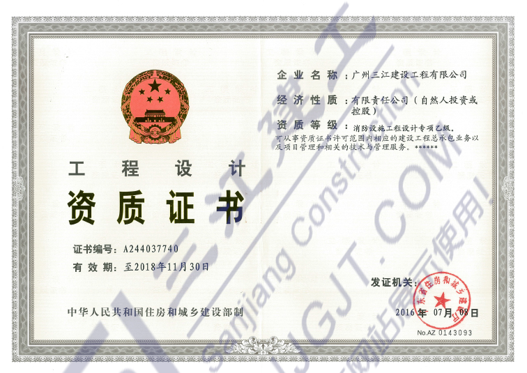 工程設(shè)計(jì)資質(zhì)證書