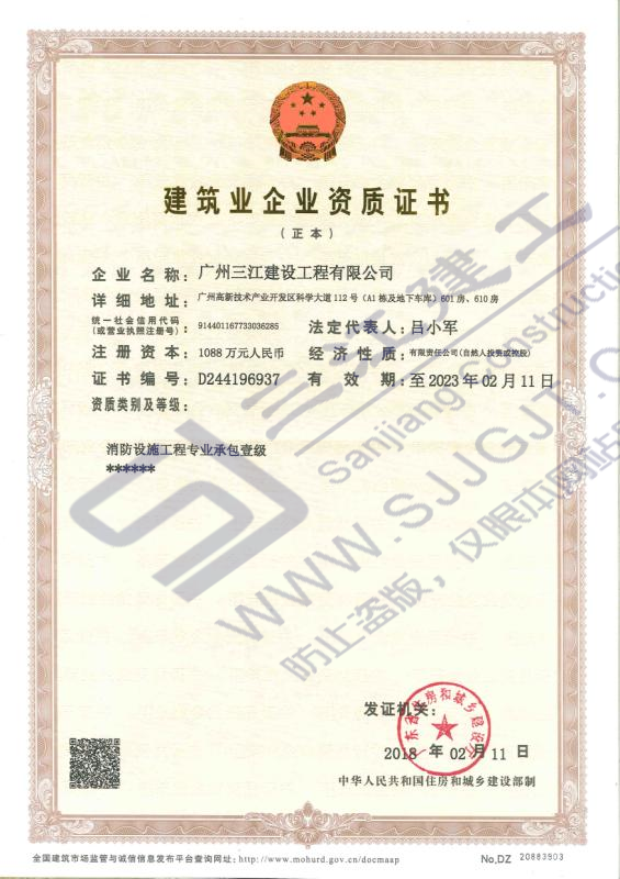 建筑業(yè)企業(yè)資質(zhì)證書【消防壹級(jí)】